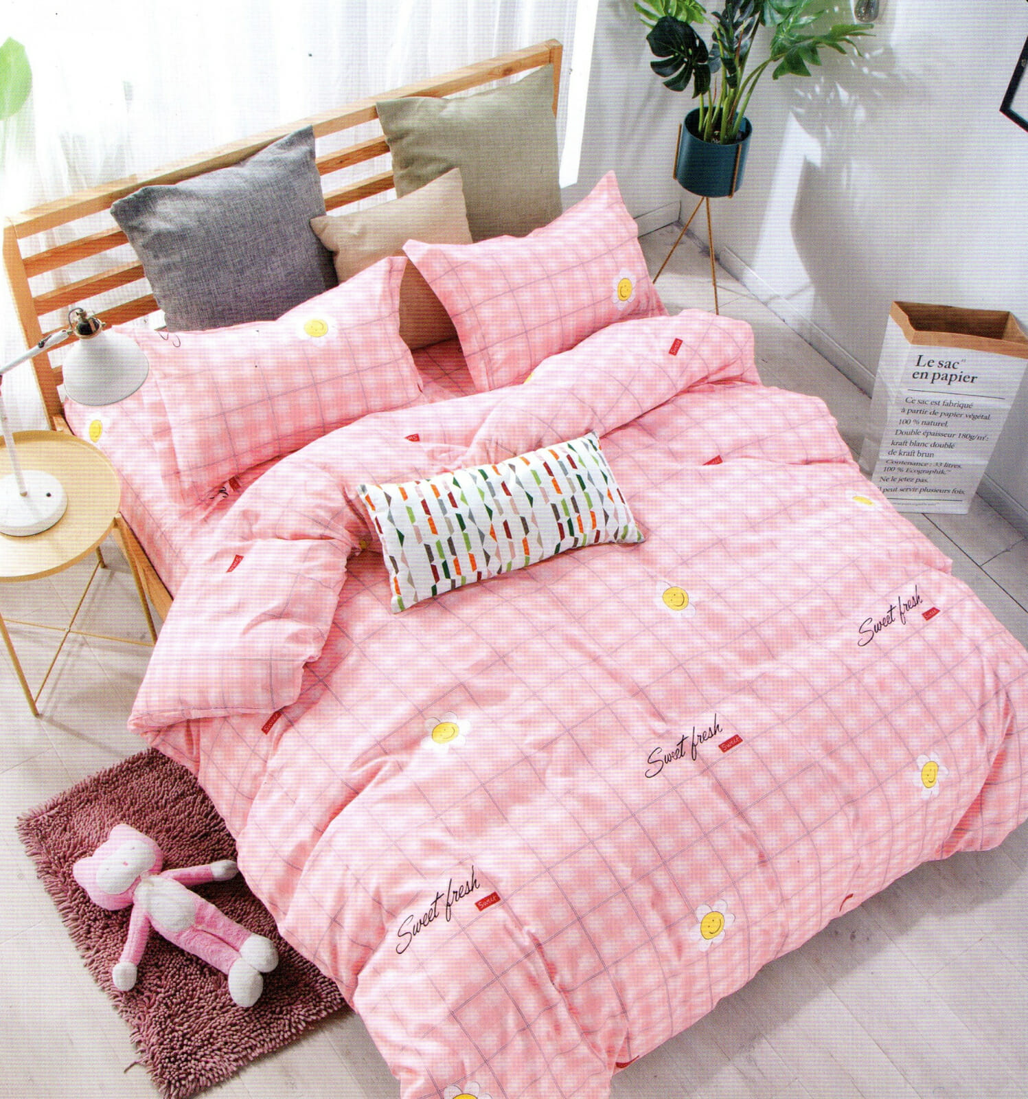 6 piese este dotat cu un elastic ce ajută la fixarea acestuia pe pat, transformând schimbarea așternuturilor într-o activitate mult mai plăcută.