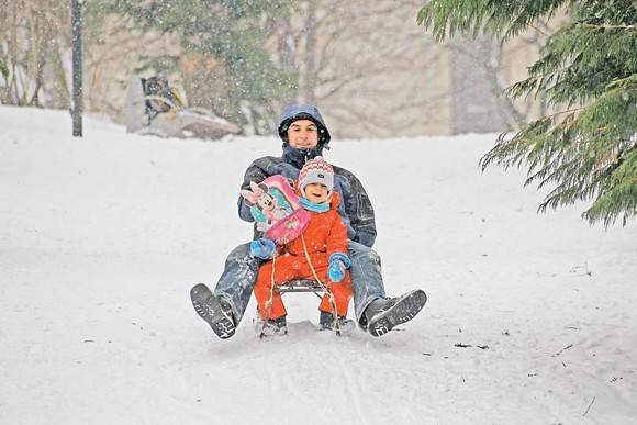 „Mă bucur că zăpada este încă îngrămădită, astfel încât să pot face mai mulți oameni de zăpadă și să mă lupt cu bulgări de zăpadă”, a spus Kim Ha-jin, în vârstă de 11 ani, care era pe sanie pe o pantă mică.