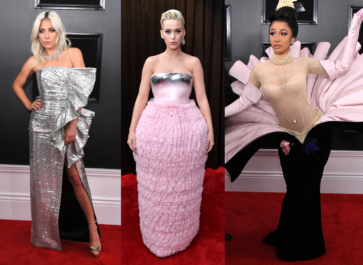 Pentru Premiile Grammy 2019, stiliștii s-au orientat spre o gamă cromatică delicată, bazată câteva nuanțe de roz pal. Varietatea ținutelor a constat în alegrea materialelor diferite, ce au generat efecte care mai de care mai speciale.