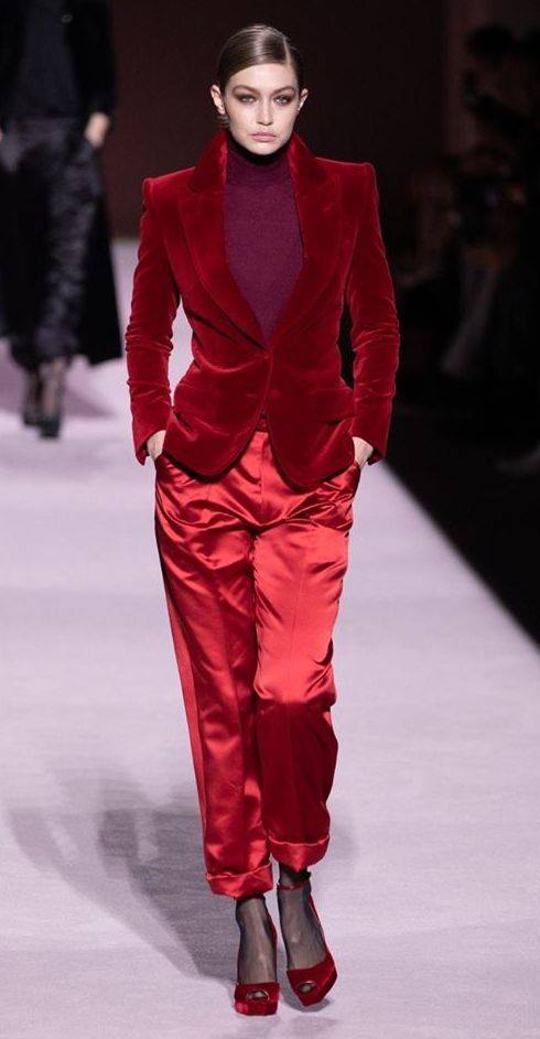 Costumul din catifea roșie, purtat de Gigi Hadid, a fost de departe atracția serii, fiind o reinterpretare a celebrului costum roșu purtat în anii ’90 de către Gwyneth Paltrow.